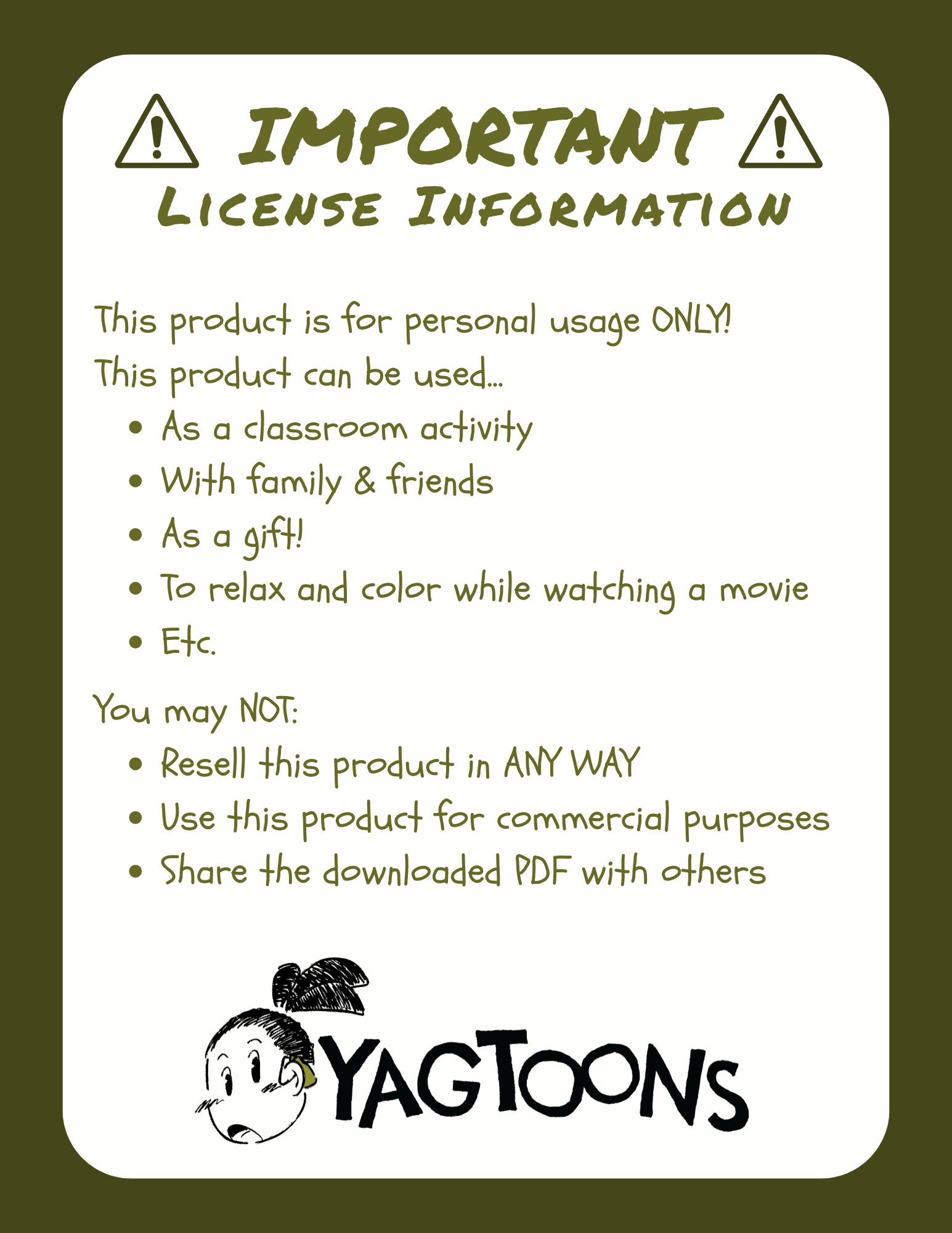 - This product is intended for personal use only, such as in a classroom, for yourself and a friend, etc.