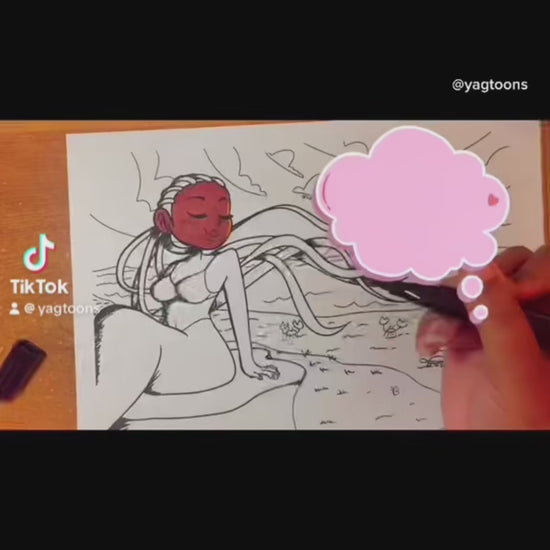 Here's a coloring page of a mermaid! You may upload this page into a drawing app/ program to color digitally, or print it out from any printer and color with your own materials (crayons, markers, colored pencils, etc.).